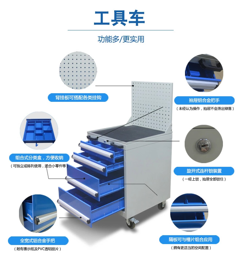 工具車適用於工具、刀具(jù)、零(líng)部件在生(shēng)產現場中的定置管理,使您的物品存取工作真正做到準時、準確、高效(xiào)、低耗。