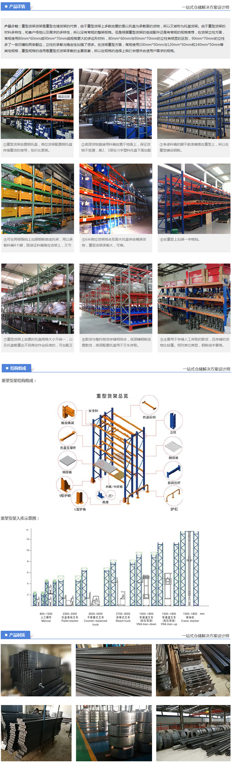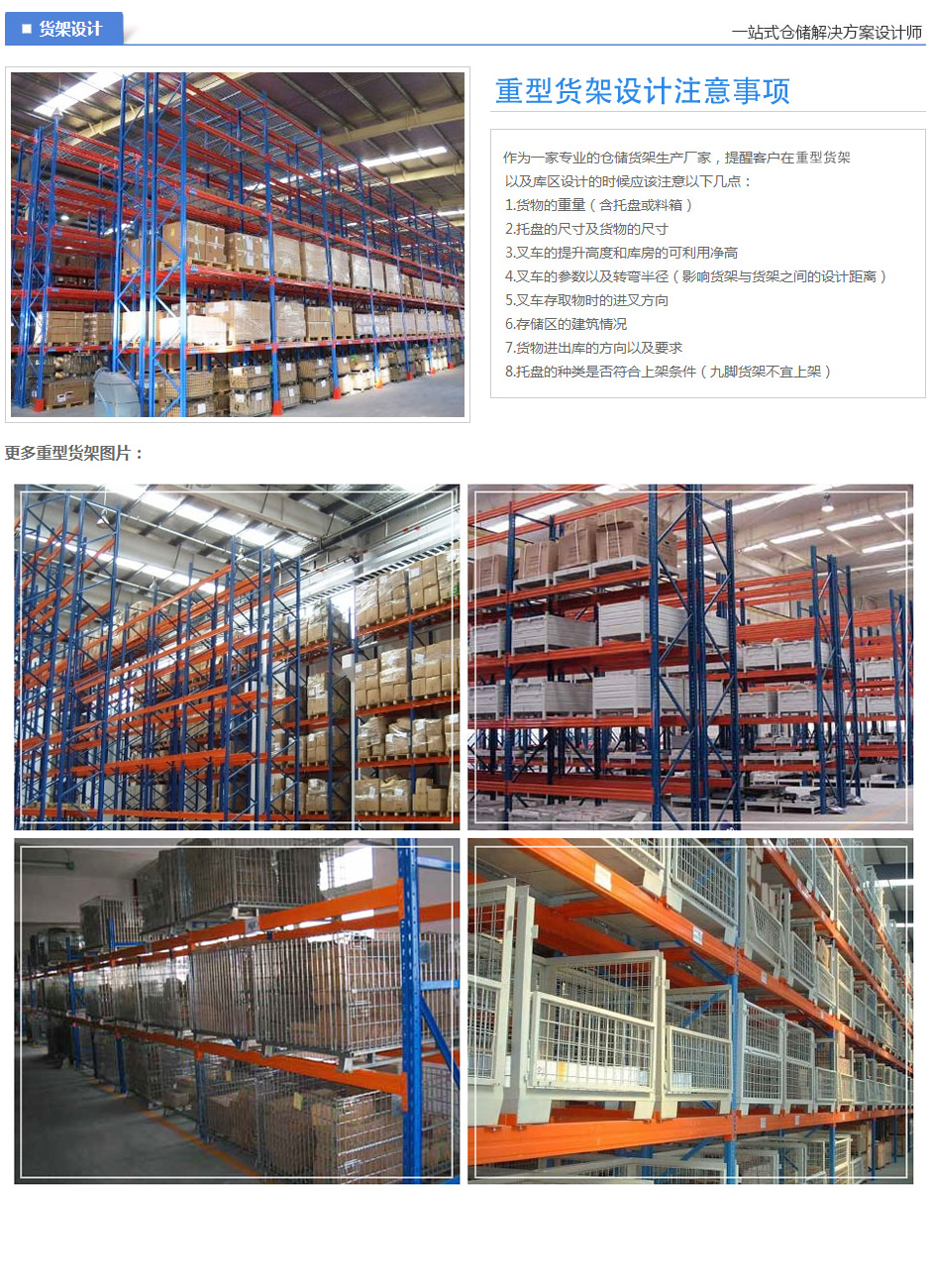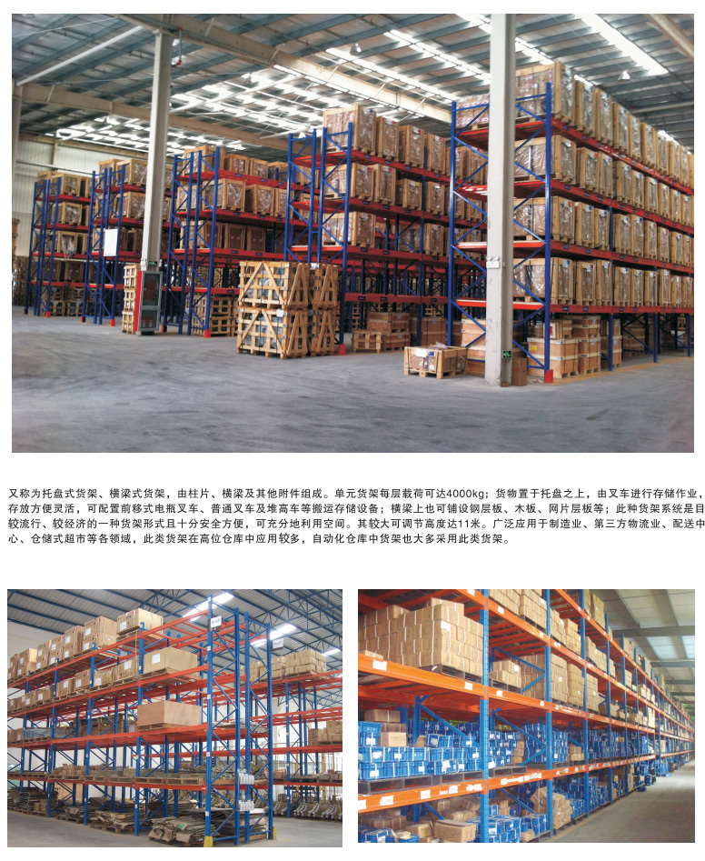 重型橫梁式貨架的優點: 1、重型橫(héng)梁式貨架結構(gòu)簡單、安全可靠,可任意調整組合;安(ān)裝、拆卸(xiè)方(fāng)便(biàn)靈活。 2、立(lì)柱由(yóu)熱軋(zhá)板折出多個角度而(ér)成, 具有慣性矩大、層載能力強、 抗衝擊性能強的特點,每層層載在相對設計下可達5000kg/層(céng)。 3、橫梁式重型貨架屬於托盤貨架類,托盤貨架的可塑型非常大, 在托盤貨(huò)架基礎上搭建模(mó)具貨架、閣樓(lóu)貨架、立體庫貨架(jià)等還可做成特殊(shū)的油桶貨架等。 4、可以增加立柱護腳、防撞杆,防止叉車碰撞;為了層載更安全 還可(kě)在橫梁上安置橫梁擱擋、層板、網片跨梁等附屬設施。 5、橫梁式重型貨架造價低,安裝和操作都很方便,查找貨(huò)位容易,適用於(yú)任何(hé)搬(bān)運工具。 6、具有貨物任意揀(jiǎn)選特性。搬運機械如叉車(chē)等可到達任意貨位(wèi)進行存(cún)儲作業,存(cún)儲作業方便、快捷! 7、單元貨架跨度一般在4m以內,深度在1.5m以內,低、高位倉庫貨架高度一般在12m以(yǐ)內,超高位倉庫貨架(jià)高度一般在30m以內(此類倉(cāng)庫基本均為自動化倉庫(kù),貨架總(zǒng)高由若幹段12m以內立柱構(gòu)成)。 8、能(néng)夠以75mm的整數倍自(zì)由調節每層(céng)層高。