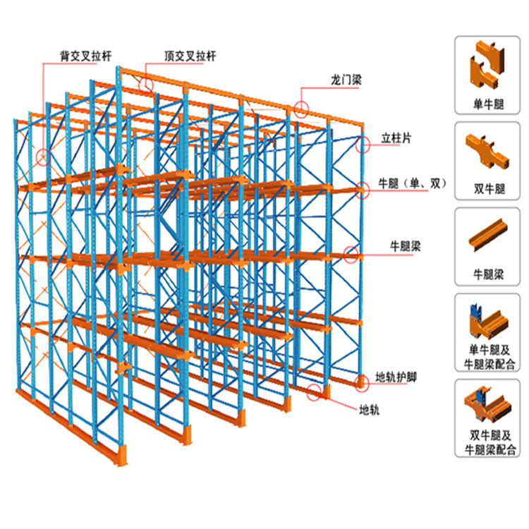 貫通式貨架可根據實際需要選擇配置導(dǎo)向(xiàng)軌道。